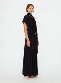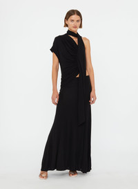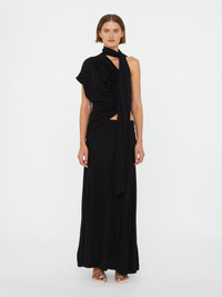 The Vienna Jersey Scarf Dress is crafted in fluid jersey and defined by an asymmetrical silhouette that twists and drapes across the body. A built-in scarf detail elongates the neckline, while a gathered overlay frames a waist cut-out. Finished with a soft column skirt for effortless movement. - One-shoulder silhouette with scarf neck detail - Draped and gathered overlay across the bust and waist - Waist cut-out detail - Full-length soft column skirt - Crafted in fluid stretch jersey - Pull-on style - Main: 100% Viscose - Dry Clean Only Model is 180cm/5’11” and wears size AU 8 (US 4) AU sizing