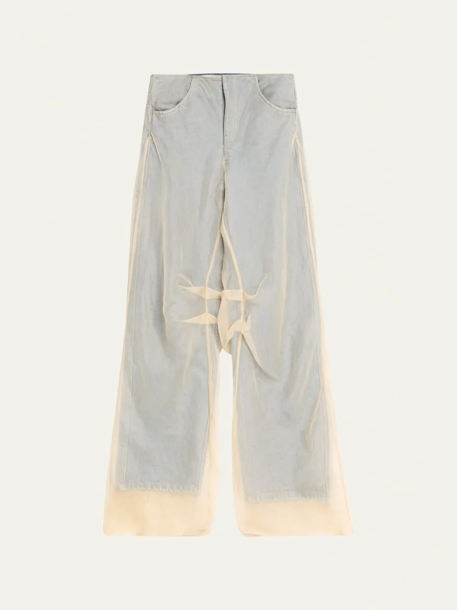 Wide-Leg Denim Jeans with Silk Parchment Overlay