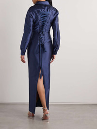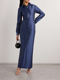 Sailor silk and wool-blend duchesse-satin maxi dress Navy
