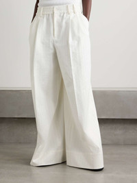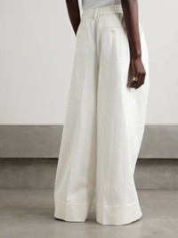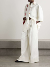 EDITORS'NOTES Christopher John Rogers' pants are embroidered with tonal stripes, giving them a cool tactile finish. They're cut from cotton and have a partially elasticated mid-rise waist and voluminous wide legs. SIZE & FIT Model measurements: - Fits true to size, take your normal size - Mid-rise, cut for a wide-leg fit - Elasticated at the waist for a flexible fit - Mid-weight, non-stretchy fabric - Model is 177cm/ 5'10" and is wearing a size Small - Bust: 80.1cm/ 31.5" - Waist: 64.8cm/ 25.5" - Hip: 90.5cm/ 35" DETAILS & CARE - Ivory cotton - Button and concealed zip fastening at front - 100% cotton - Dry clean - Designer color: Marshmallow