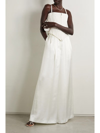 EXCLUSIVE AT NET-A-PORTER. Christopher John Rogers' pants are a sleek option for the modern bride. They're made from lustrous ivory satin with elongating pleats along the wide legs. Style yours with the coordinating blazer and statement heels.