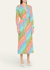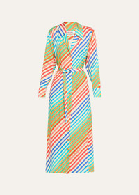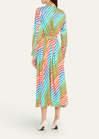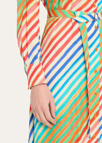 Rainbow Striped Waist-Tie Bias Midi Shirtdress