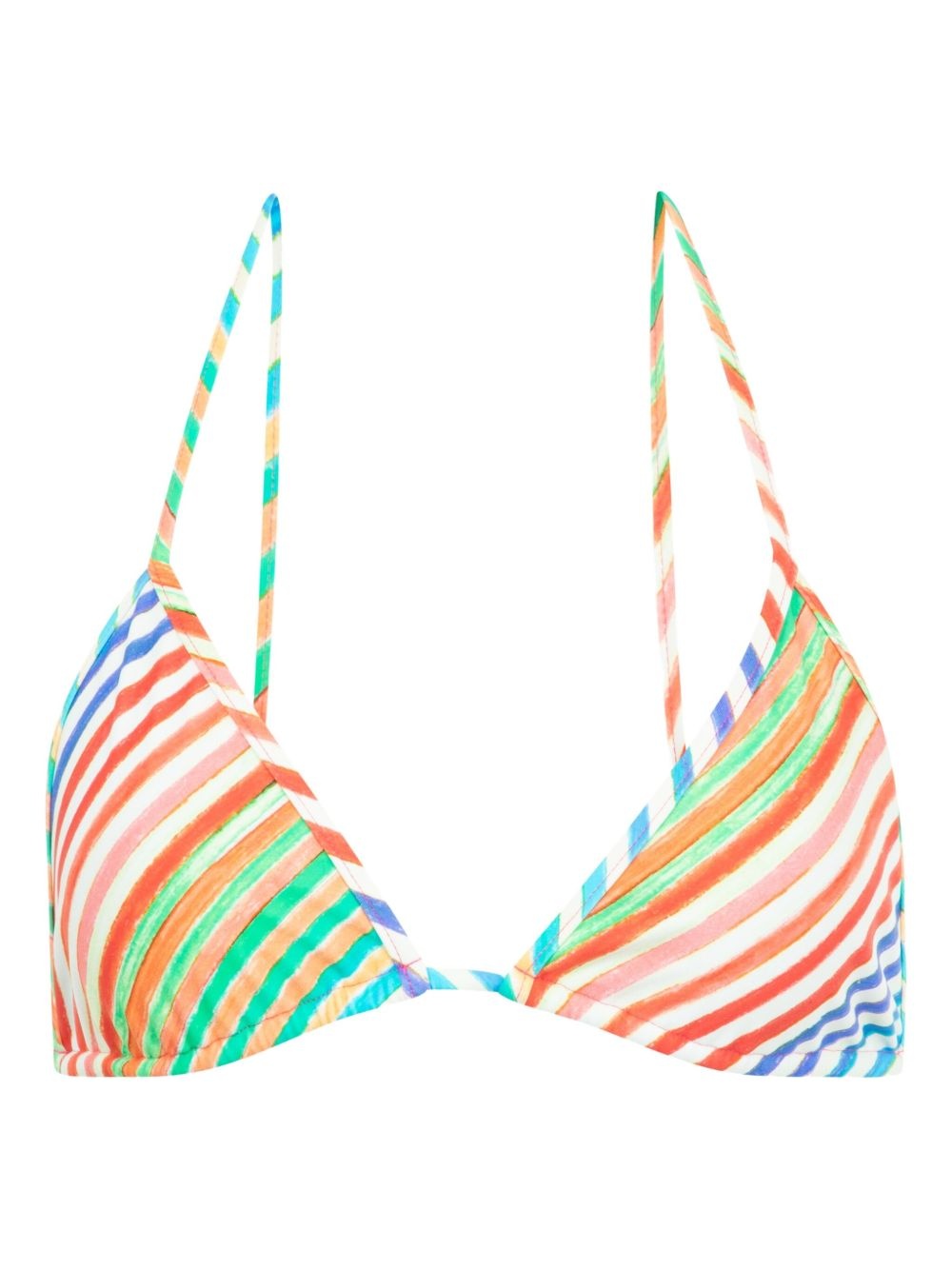 Bias Crayon striped triangle bikini top Highlights - Aqua blue/multicoloured - Triangle cups - Adjustable shoulder ties - Be mindful to try on swimwear over your own garments. Imported Composition Nylon 78%, Elastane 22%