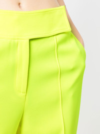 tailored tapered trousers fluorescent yellow concealed front fastening two side inset pockets two rear welt pockets tapered leg Made in United States Composition Acetate 72%, Polyester 28% SIZE & FIT Model measurements Height 5 ft 11 in(1.8 m) Bust/Chest 28.34 in(72 cm) Hips 35.43 in(90 cm) Waist 23.62 in(60 cm) FittingInformation This piece fits true to size. We recommend you get your regular size Designed to be fitted at the waist, loose over the leg Made with a mid-weight fabric