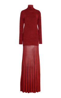 PRODUCT DETAILS - Long sleeve, turtleneck, flowy skirt, maxi hem - Slip on - Composition: 100% Rayon - Color: Sarsaparilla - Dry Clean Only - Fall/Winter '25