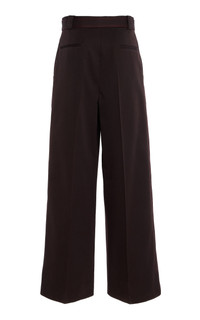 PRODUCT DETAILS - Wide-cut leg, flat front - Concealed zip and hook fastening - Composition: 100% Wool - Color: Pumpernickel - Dry Clean Only - Fall/Winter '25