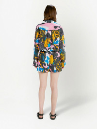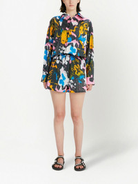 camouflage-print long-sleeved shirt black/multicolour cotton all-over graphic print classic collar front button fastening long sleeves straight hem Made in United Kingdom Composition Cotton 100%
