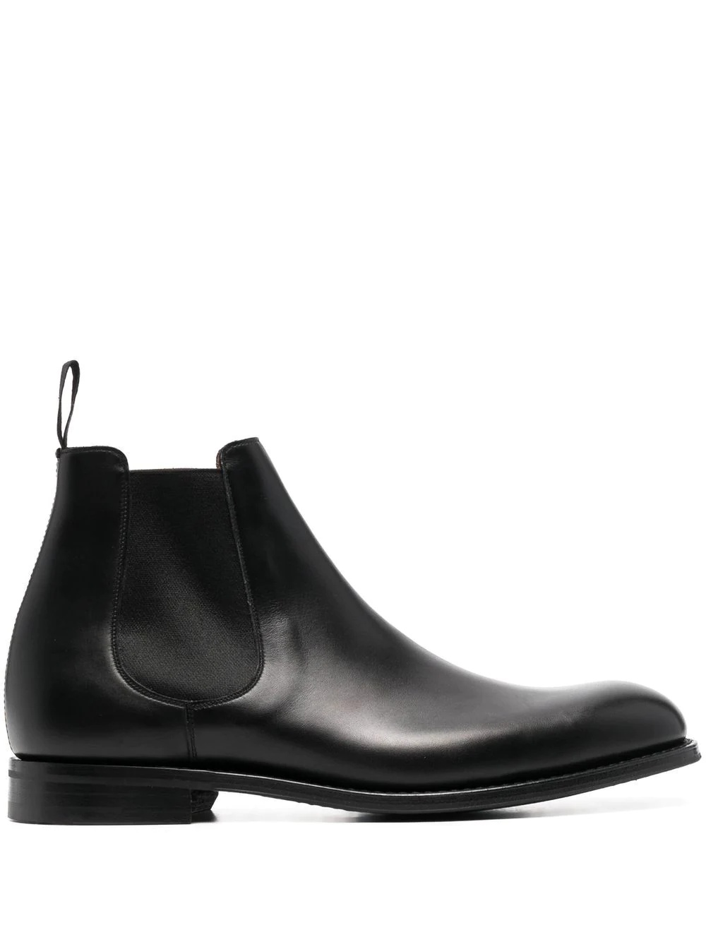 leather ankle-length boots leather ankle-length boots from CHURCH'S featuring black, calf leather, round toe, elasticated side panels, pull-tab at the heel, ankle-length and flat leather sole. Composition Outer: Calf Leather 100% Lining: Calf Leather 100% Sole: Rubber 100% SIZE & FIT Measurement CIRCUMFERENCE 8.66 in(22 cm) HEEL 1.37 in(3.5 cm) HEIGHT 5.51 in(14 cm) Sole height 0.59 in(1.5 cm)