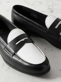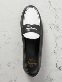 EDITORS'NOTES Church's unrivaled craftsmanship has spanned over 151 years; the late Queen Elizabeth II even visited the Northampton factory, which still operates as it did over a century ago. These 'Natalie' loafers are handstitched from leather and have penny slots and a classic white and black colorway. SIZE & FIT - Fits true to size, take your normal size - Italian sizing DETAILS & CARE - Slight heel - Black and white leather (Lamb) - Slip on