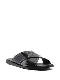 stud-embellished slides Highlights - Black - Branded leather insole - Leather and rubber sole - Square open toe Composition Lining: Calf Leather 100% Outer: Calf Leather 100% Sole: Calf Leather 100%, Rubber 100%