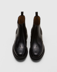 Echoing its equestrian roots, the Ketsby L style holds the rural yet refined charm of the classic Chelsea boot, combining a traditional brogue motif with a casual silhouette for a sophisticated result. The polished fume finish of the calfskin upper emphasises its rich detailing with deep tonal nuances, achieved by waxing the leather by hand. At the same time, the lightweight EVA sole ensures greater comfort and flexibility. Fine craftsmanship meets functional elements in this design, making it perfect for the city and countryside alike. • Product code: DT0231_9EM_F0AAB • Full brogue Chelsea boot with elasticated side insert • Calf leather with polished fume finish • Cotton pull-on tab to back • Lightweight EVA sole with Church's & Co. logo on the bottom • Internal lining for longevity of wear • Blake construction • Handwritten shoe info to lining • We advise to purchase a half size smaller than your usual size • Imported product
