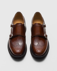 An inherently British and dandy charm permeates the buckled Monk Strap style, initially inspired by the shoes worn by the monks during their daily duties but soon evolved towards a distinct and unique aesthetic. A classic men's wardrobe staple, it is now reimagined through a feminine lens in the Lana L design, crafted with a slimmer silhouette and Blake construction. A wing tip design, classic brogue pattern, and double buckle convey a vintage feel. The new lightweight and flexible EVA sole adds practicality to this polished fume leather style. • Product code: DO0049_9EM_F0AEY • Full brogue double monk strap • Calf leather with polished fume finish • Silver-tone buckle fastening • Lightweight EVA sole with Church's & Co. logo on the bottom • Internal lining for longevity of wear • Blake construction • Handwritten shoe info to lining • We advise to purchase a half size smaller than your usual size • Imported product