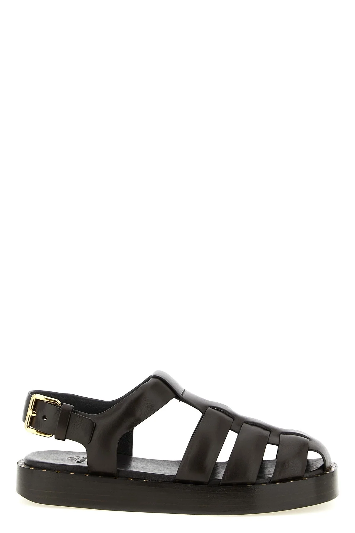 cod. DX01283ZLGF0AAD 'Reika' leather sandals with adjustable strap, padded insole, wooden midsole with stud application, rubber sole. Color: Brown Size & Fit: EU WOMEN Composition: 100% calfskin leather (Bos Taurus)