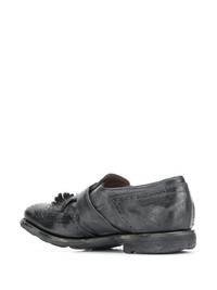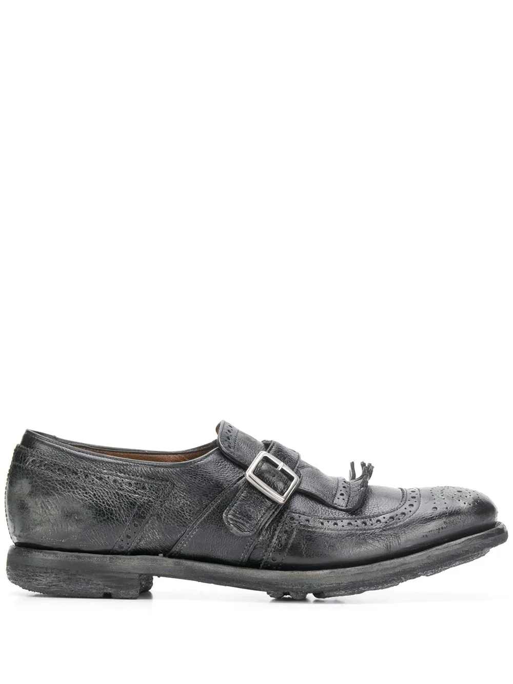 Shanghai monk shoes It's time to broaden your footwear horizons. Try something a little different, like these Shanghai brogue monk shoes from Church's. With a fringed flap and brogue detailing, we're certain you don't have anything quite like them. Highlights - Black - Calf leather - Distressed finish - Fringe detail - Perforated design - Monk strap - Round toe - Low stacked heel Composition Calf Leather 100% SIZE & FIT Measurement HEIGHT 0.98 in(2.5 cm)