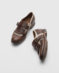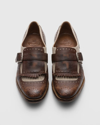 An evolution of the iconic Shanghai buckled loafer, our women’s reinterpretation stays true to the spirit of the 1929 original whilst. The leather is treated with our vintage glace finish. This distressed yet polished effect creates a rich textural contrast against linen panels. A masterful display of artisanal expertise, it features traditional brogue perforations alongside its hand-worn finish. Taking an average of 200 steps to complete, each Shanghai shoe is as unique as it is desirable. Play on this item’s classic charm with equally reminiscent pieces like tweed skirts and ruffed shirts. • Product code: DO0008_9QG_F0XZG • Loafer with side buckle--- • Glace calf leather and linen with broguing--- • Raised toe spring--- • Vintage rubber sole with rivets--- • Internal lining for longevity of wear--- • Vintage Church's label to lining--- • Church's crest to distressed inner sock--- • Vintage logo to sole • Imported product