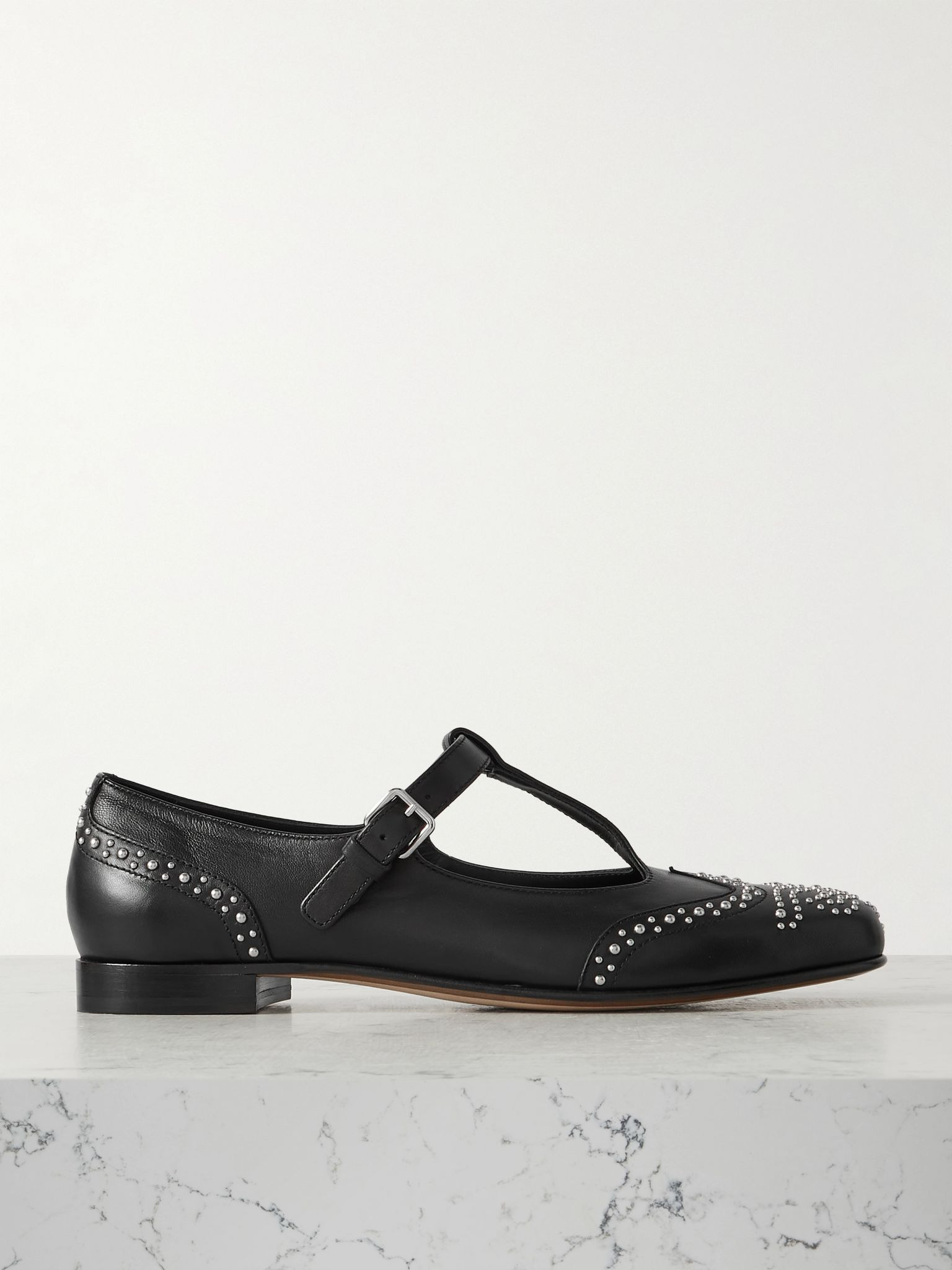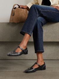 Church's’ ‘Opal’ shoes are a cross between Mary Janes and brogues. Made from smooth leather, they're decorated with tiny silver-tone studs in place of traditional perforations and have adjustable straps. Wear yours with cropped jeans or tailoring. Size & Fit - Fits true to size, take your normal size - Italian sizing Details & Care - Heel measures approximately 30mm/ 1 inch - Black leather (Lamb) - Buckle-fastening strap