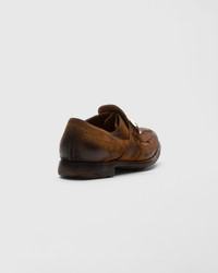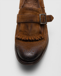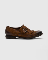 A historic and essential Church's design, first introduced in 1929, the Shanghai Monk Strap breathes new life in this suede iteration, specifically treated to create a game of hues and textures that emphasises the design's emblematic vintage look. An expression of the brand's premium craftsmanship, this distinctive style requires an average of 200 steps to complete and is enriched with traditional features such as the raised toe, front fringes, and exquisite English brogue detailing—timeless details reflecting its eclectic spirit. • Product code: DO0008_9PX_F0AEY • Loafer with side buckle • Suede leather with broguing • Raised toe spring • Vintage rubber sole with rivets • Internal lining for longevity of wear • Vintage Church's label to lining • Church's crest to distressed inner sock • Vintage logo to sole • Imported product