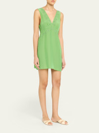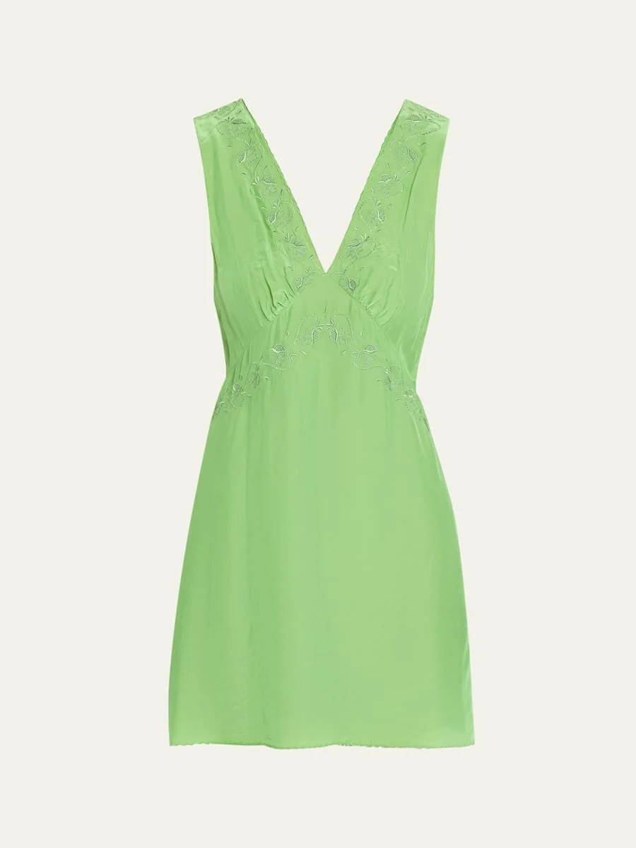 Ciao Lucia "Castelo" luxurious silkblend mini dress adorned with intricate tonal embroidery V neckline Sleeveless Slip silhouette Hem falls above the knee Viscose/silk Dry clean Imported