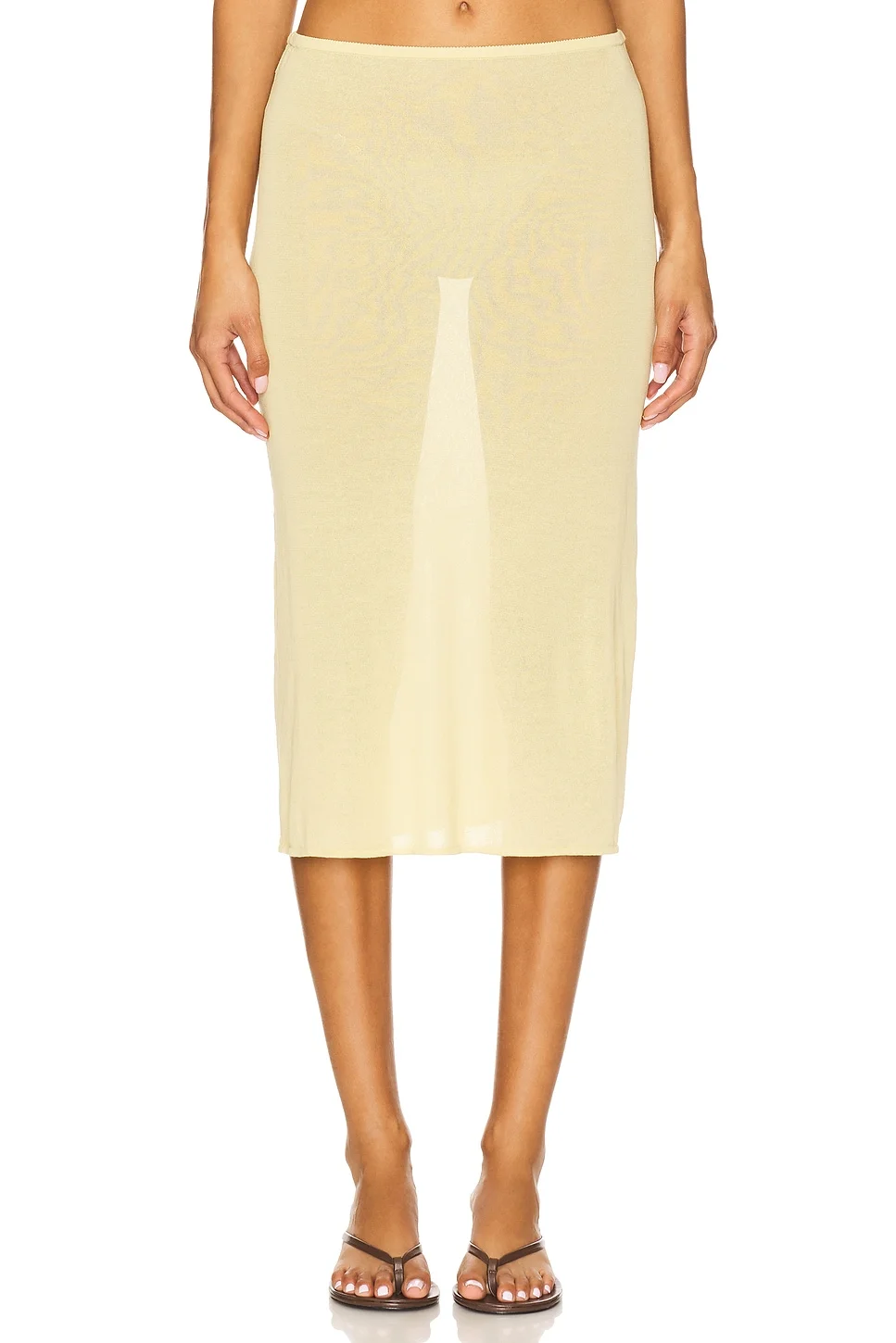 - 77% cotton 23% nylon - Dry clean only - Unlined - Pull-on styling - Elasticized waistband - Lightweight knit fabric - Garment is made with a semi-sheer fabric, undergarments can show through - Skirt measures approx 30" in length - Revolve Style No. CIAR-WQ6 - Manufacturer Style No. 70167120PST