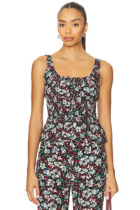 - 70% viscose 30% silk - Made in India - Dry clean only - Pull on styling - Item not sold as a set Smocked elastic bodice ruffled trim floral print throughout - Lightweight crepe fabric - Revolve Style No. CIAR-WS25 - Manufacturer Style No. 20401250PEN