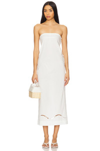 - 100% cotton - Made in China - Dry clean only - Unlined - Hidden side zip closure - Elastic neckline - Cut-out design - Neckline to shortest hem measures approx 27.5" and to longest hem approx 42" in length - Revolve Style No. CIAR-WD16 - Manufacturer Style No. 10565510WHT