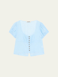 Ciao Lucia "Risi" gingham cotton top Scoop neckline Short puff sleeves Cropped fit Button-front Cotton Dry clean Imported Online Inquiries: BGS21_T6VWL| Store Inquiries: #5046375