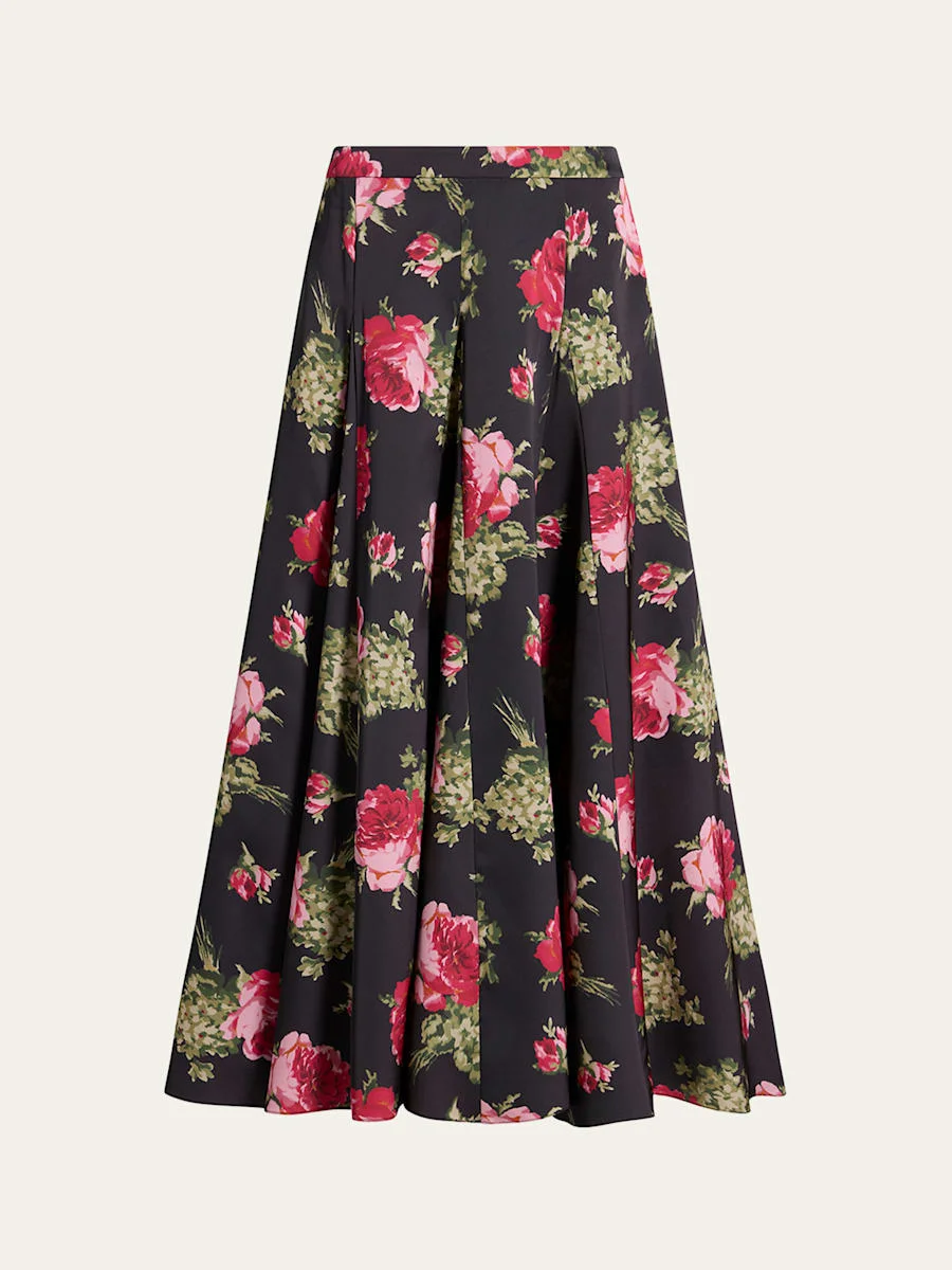 An artful floral print illustrates the "Baroque Roses Hilda" satin skirt from Cinq a Sept Approx. 37.5"L from shoulder to hem Banded waist Midi length Aline silhouette Concealed back zip closure Polyester Dry clean only Imported