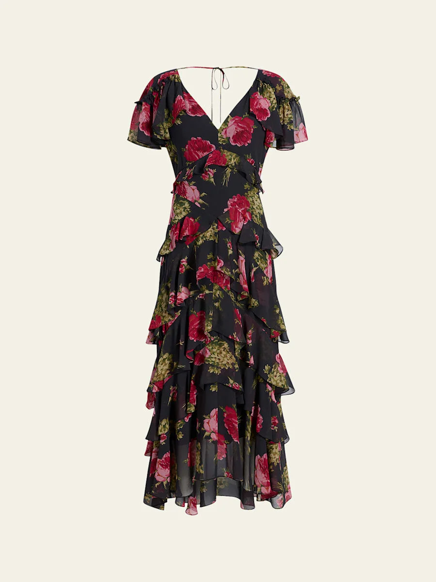 Baroque Roses Tatum Tiered Ruffle Midi Dress