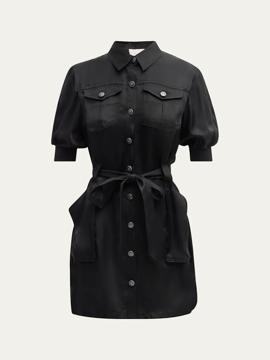 Damla Belted Puff-Sleeve Mini Shirtdress