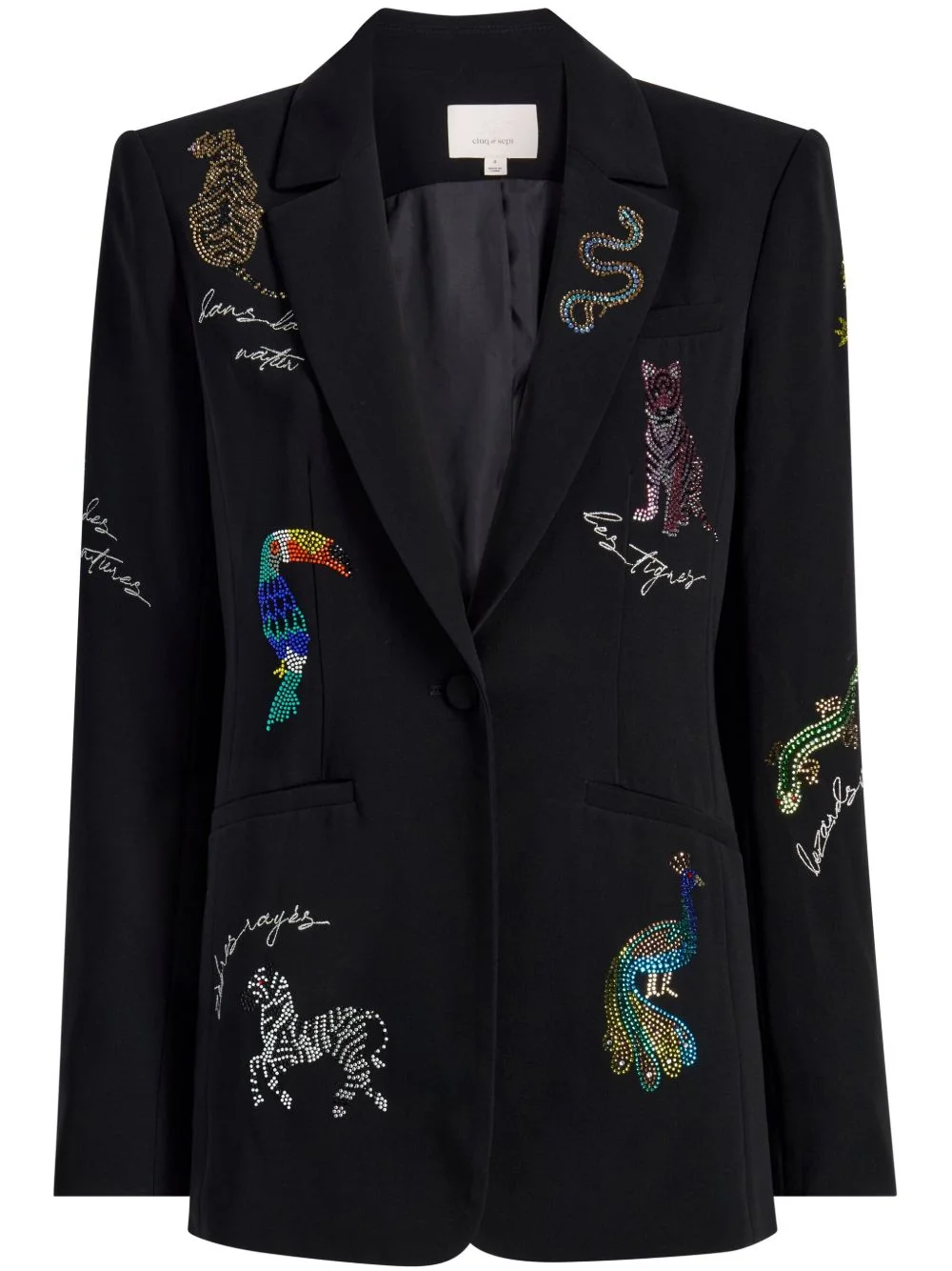 Karlie blazer Highlights - Black - Front button fastening - Rhinestone embellishment - Two front welt pockets Imported Composition Outer: Triacetate 69%, Polyester 31% Lining: Polyester 100% Washing instructions Dry Clean Only