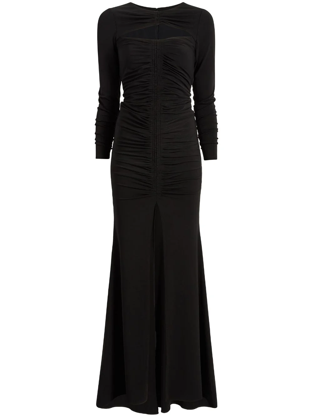 Perri mermaid-design gown jet black mermaid design cut-out detailing knot detailing ruched detailing long sleeves front slit straight hem Imported Composition Polyester 85%, Spandex/Elastane 15%