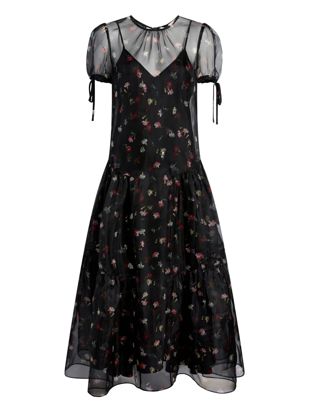 puff-sleeve tiered dress Highlights - Black - Floral print - Sheer overlay - Puff sleeves - Tie-fastening cuffs - Tiered skirt Imported Composition Silk 100% Washing instructions Read Manufacturer Guidelines