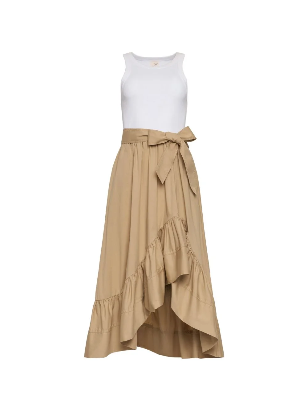 Zayla ruffled tie-waist midi dress Highlights - Beige/white - Ruffled detail - Asymmetric hem - Sleeveless - Round neck Imported Composition Cotton 91%, Spandex/Elastane 9% Washing instructions Dry Clean Only