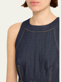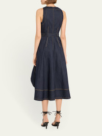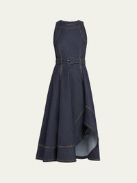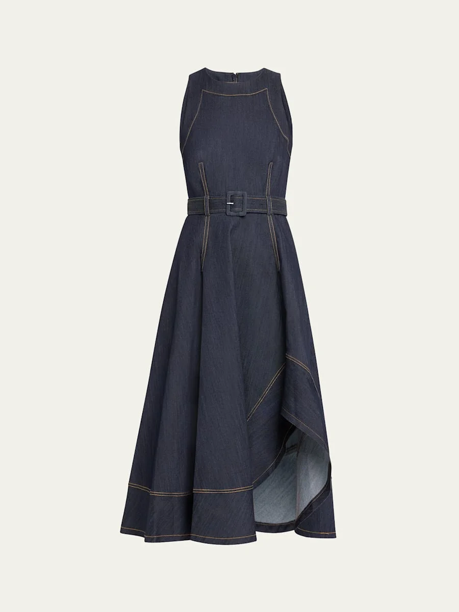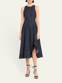 Zelda Belted Asymmetric Sleeveless Denim Midi Dress