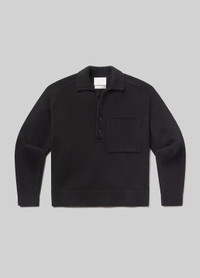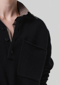 A luxe update to a heritage staple, the ‘Agatha’ rugby sweater is knit from a soft blend of wool and ultra-fine cashmere for breathable warmth and an elevated feel. Designed in a true black with button detailing and a relaxed drape, it’s ideal for effortless layering. Style over a slim turtleneck with wide-leg denim for a play on proportions that feels both refined and casual. This fit is true to size. Looks Like: True black rugby sweater with button detailing Feels Like: A mix of natural wool fibers and ultra fine cashmere, giving a breathable and soft hand feel From our HUMANITY Collection DETAILS Model is 5'10" and wearing a size Small Fabric Content: 70% Wool 30% Cashmere Care Instructions: Dry clean only. Made in Bulgaria with imported materials 5162_BLK