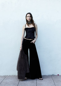 The ‘Amari Ultra’ is crafted in soft stretch velvet that feels as good as it looks. Designed with a mid rise and full-length flare, it balances comfort with a refined finish. In deep black, it’s a versatile piece you’ll reach for through the holiday season and beyond. This fit is true to size. Looks Like: True black velvet pant Feels Like: Ultra soft stretch velvet with a refined, smooth polished texture From our HUMANITY Collection DETAILS Closure: Button Fly Rise: 12 1/4" Inseam: 32 1/2" Leg Opening: 41" Model is 5'10" and wearing a size 27 Fabric Content: 54% Cotton 44% Rayon 2% Spandex Care Instructions: Machine wash cold inside out with like colors. Do not bleach. Tumble dry low. Made in Turkey with imported materials 2156-1184_BLK