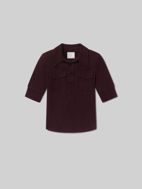 An elevated take on the classic polo, the Amina is crafted from ultra-soft, supportive rib for a refined feel. Designed with elbow sleeves and front patch pockets, it offers a clean, minimal silhouette with subtle texture. The Pashmina hue—an off-white with soft warmth—lends effortless versatility. Style with tonal separates or vintage denim. This fit is true to size. Looks Like: Off white elbow sleeve polo shirt with front pockets Feels Like: Ultra soft and supportive ribbed cotton This product is made with regenerative cotton from Citizens of Humanity Group’s Regenerative Cotton Program. Our program collaborates closely with farmers both domestically and internationally, nurturing growth, fostering education, and encouraging the widespread adoption of regenerative agricultural practices. From our HUMANITY Collection DETAILS Body Length: 22" Sleeve Length: 11 1/4" Model is 5'10" and is wearing a size Small Fabric Content: 49% Regenerative Cotton 49% Lyocell 2% Spandex Care Instructions: Machine wash cold inside out with like colors. Do not bleach. Tumble dry low. Made in USA with imported materials 9452-3004_PMINA