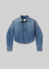 The Ana shirt blends tailored ease with denim attitude, cut in lightweight Japanese cotton denim with a breathable, natural drape. The cropped silhouette and pointed collar bring modern structure, while the Somerset wash—a softly faded medium indigo—adds relaxed character. Style with crisp white or worn-in denim for effortless contrast. This fit is true to size. Looks Like: Medium indigo denim cropped long sleeve shirt with pointed collar Feels Like: Lightweight Japanese denim crafted from breathable, soft cotton with a gentle, natural drape From our HUMANITY Collection DETAILS Body Length: 19" Chest: 50 1/2" Sleeve Length: 22 3/4" Model is 5'10" and wearing a size Small Fabric Content: 100% Cotton Care Instructions: Machine wash cold inside out with like colors. Do not bleach. Tumble dry low. Made in Turkey with imported materials 9444-1527_SOMST
