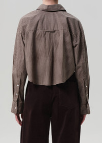 A modern staple with a vintage nod, the Ana shirt is cut from ultra-lightweight Japanese cotton with an airy feel. The cropped silhouette and pointed collar lend sharp structure, while the dark brown and grey micro plaid adds subtle depth. Effortless layered or worn solo with high-rise denim or relaxed trousers. This fit is true to size. Looks Like: Dark brown and grey micro plaid cropped long sleeve shirt with pointed collar Feels Like: Ultra lightweight Japanese cotton with an airy hand From our HUMANITY Collection DETAILS Body Length: 19" Chest: 50 1/2" Sleeve Length: 22 3/4" Model is 5'10" and wearing a size Small Fabric Content: 100% Cotton Care Instructions: Machine wash cold inside out with like colors. Do not bleach. Tumble dry low. Made in Turkey with imported materials 9444-1888_HTGST