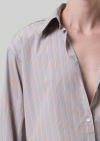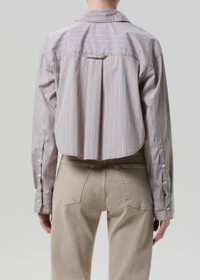 Tailored yet easy, the Ana shirt is crafted from ultra-lightweight, breathable cotton with an airy feel. The cropped cut and pointed collar offer a clean, modern shape, while grey and medium brown stripes bring a refined, masculine edge. Style it solo or layer loosely over a fitted tank or tee. This fit is true to size. Looks Like: Grey and medium brown striped cropped long sleeve shirt with pointed collar Feels Like: Ultra lightweight breathable cotton with an airy hand From our HUMANITY Collection DETAILS Body Length: 19" Chest: 50 1/2" Sleeve Length: 22 3/4" Model is 5'10" and wearing a size Small Fabric Content: 100% Cotton Care Instructions: Machine wash cold inside out with like colors. Do not bleach. Tumble dry low. Made in Turkey with imported materials 9444-1488_NBLST