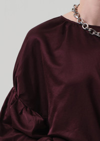 Romantic yet refined, the Anika top is crafted from an ultra-smooth cotton-silk blend that drapes with ease. Designed with long puff sleeves and a softly structured silhouette, it offers understated volume and fluidity. The deep Burgundy hue—with rich red and purple undertones—adds depth and polish. Style with denim or soft tailoring for a balanced look. This fit is true to size. Looks Like: Deep dark red with purple undertones long sleeve puff sleeve blouse Feels Like: Ultra smooth cotton silk blend From our HUMANITY Collection DETAILS Body Length: 22 1/2" Sleeve Length: 20" Model is 5'10" and wearing a size Small Fabric Content: 70% Cotton 30% Silk Care Instructions: Dry clean only. Made in India with imported materials 9427_BRG