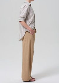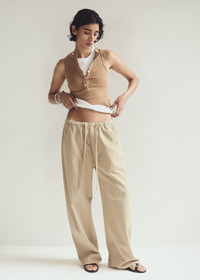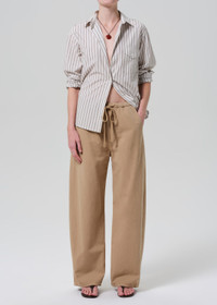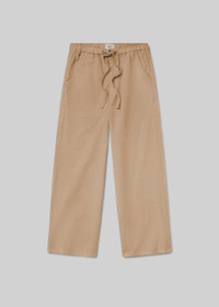 The Aurora Pull-On Pant is the ultimate warm-weather staple, effortlessly blending sophistication with ease. Designed to be worn full-length or cuffed for a cropped look, this versatile style transitions seamlessly from beach to street. Throw it on over a bikini, pair it with a crisp button-down, or dress it up for an evening out—there’s nowhere this pant doesn’t work. Crafted from a breathable cotton-flax blend, it’s your go-to for sun-soaked days. This fit is true to size. Looks Like: Light to medium beige pull on pant with drawstring Feels Like: Lightweight cotton flax blend with the right amount of drape for all day wearability From our HUMANITY Collection DETAILS Rise: 13" Inseam: 29 1/2" Leg Opening: 22" Model is 5'10" and wearing a size Small Fabric Content: 79% Cotton 21% Flax Care Instructions: Machine wash cold inside out with like colors. Do not bleach. Tumble dry low. Made in USA with imported materials 2186-1506_CLINA
