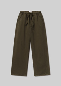 The Aurora Pull-On Pant is the ultimate warm-weather staple, effortlessly blending sophistication with ease. Designed to be worn full-length or cuffed for a cropped look, this versatile style transitions seamlessly from beach to street. Throw it on over a bikini, pair it with a crisp button-down, or dress it up for an evening out—there’s nowhere this pant doesn’t work. Crafted from a breathable cotton-flax blend, it’s your go-to for sun-soaked days. This fit is true to size. Looks Like: Dark olive pull on pant with drawstring Feels Like: Lightweight cotton flax blend with the right amount of drape for all day wearability From our HUMANITY Collection DETAILS Rise: 13" Inseam: 29 1/2" Leg Opening: 22" Model is 5'10" and wearing a size Small Fabric Content: 79% Cotton 21% Flax Care Instructions: Machine wash cold inside out with like colors. Do not bleach. Tumble dry low. Made in USA with imported materials 2186-1506_DKOLI