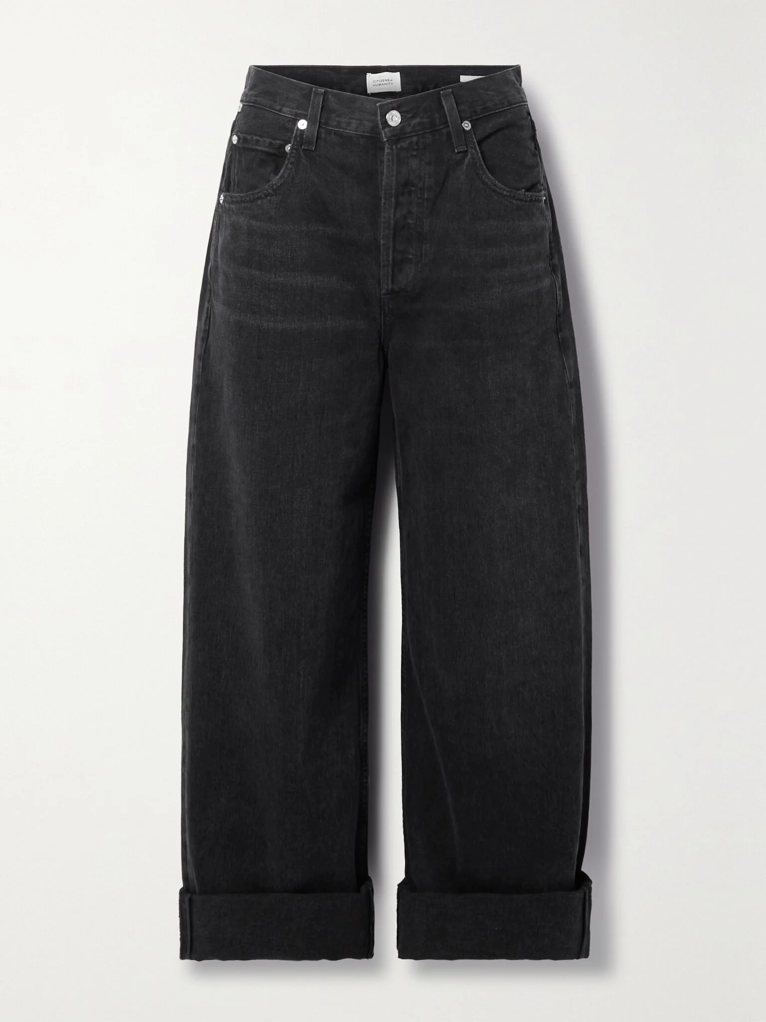 Wide-leg pants are huge this season, and Citizens of Humanity's ‘Ayla Baggy’ jeans are such an easy, comfortable way to tap into the trend. They're made from organic denim and have a faded black wash and exaggerated rolled cuffs to enhance the relaxed feel. The cropped length is a perfect way to showcase your favorite sneakers or loafers. This product was created using Considered Materials. Find out more about NET SUSTAIN here. Size & Fit - Fits large to size, take one size smaller than normal - Mid-rise, cut for a wide-leg fit - Mid-weight, non-stretchy fabric - Size 26 jeans have an inside leg of 31.9"/ 81cm - Model is 180cm/ 5’11” and is wearing a size 26 Details & Care - Black organic denim - Partially concealed button fastenings along front - 100% organic cotton - Machine wash - Designer wash: Voila