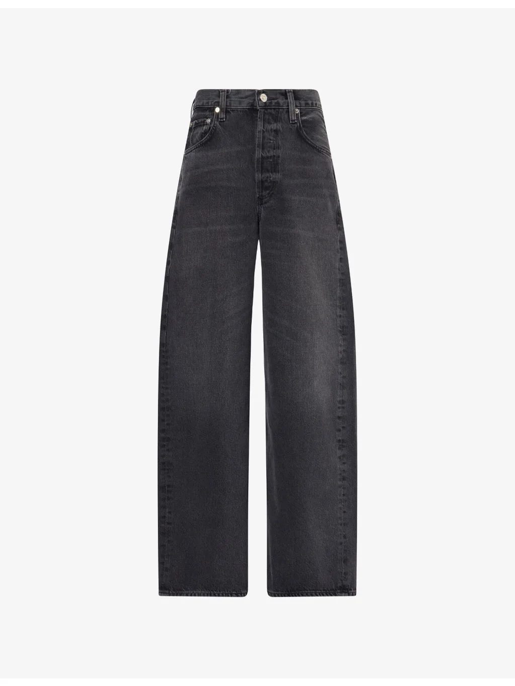 PRODUCT DETAILS - Citizens of Humanity denim jeans - 100% cotton - Exposed button and concealed button-fly fastening at front - Baggy fit, high-rise, wide leg, belt loops, five pockets, brand patch at back, faded wash and whiskering - Machine wash cold - Made in Turkey - True to size - Size 26: rise 12in / 31cm, inside leg 31in / 79cm, leg opening 20in / 51cm - Model is 5ft 10in/1.78m and wears a size 26 - Midweight, slight stretch Ref: R04587011