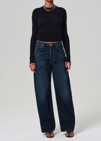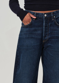 Inspired by a reworked vintage silhouette - our Ayla offers a slightly relaxed but flattering top block into a roomy untacked cuffed leg that can also be worn uncuffed. This style is true to size and intended to sit relaxed at the natural waist. For a higher and closer fit, we recommend sizing down. This fit is true to size. Looks Like: Dark deep indigo with subtle fading and whiskering Feels Like: Rigid, non-stretch regenerative cotton with a soft hand feel This product is made with regenerative cotton from Citizens of Humanity Group’s Regenerative Cotton Program. Our program collaborates closely with farmers both domestically and internationally, nurturing growth, fostering education, and encouraging the widespread adoption of regenerative agricultural practices. From our HUMANITY Collection DETAILS Closure: Button Fly Rise: 12 3/8" Inseam: 32" Leg Opening: 20 1/2" Model is 5'10" and wearing a size 27 Fabric Content: 100% Regenerative Cotton Care Instructions: Machine wash cold inside out with like colors. Do not bleach. Tumble dry low. Made in Turkey with imported materials 2053D-3011_CTBRV