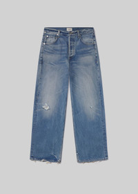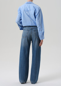 The ‘Ayla’ jean offers a refined take on the baggy silhouette with a relaxed fit that sits away from the body while maintaining a clean, intentional shape. The ‘Solano’ wash is a dark-to-medium indigo with soft fading, subtle distressing, and hints of whiskering for a naturally worn-in feel. Crafted from a blend of regenerative cotton, lyocell, and post-consumer recycled cotton, the rigid denim has a soft hand for lasting comfort. Style effortlessly with everything from crisp shirting to slim knits. This style is true to size and intended to sit relaxed at the natural waist. For a higher and closer fit, we recommend sizing down. This fit is true to size. Looks Like: Dark to medium indigo denim pant with slight distressing Feels Like: Rigid, non-stretch denim made from a blend of cotton to give a soft hand feel for all day comfort This product is made with regenerative cotton from Citizens of Humanity Group’s Regenerative Cotton Program. Our program collaborates closely with farmers both domestically and internationally, nurturing growth, fostering education, and encouraging the widespread adoption of regenerative agricultural practices. From our HUMANITY Collection DETAILS Closure: Button Fly Rise: 12 3/8" Inseam: 32" Leg Opening: 20 1/2" Model is 5'10" and wearing a size 27 Fabric Content: 67% Regenerative Cotton 22% Recycled Lyocell 11% Post Recycled Cotton Care Instructions: Machine wash cold inside out with like colors. Do not bleach. Tumble dry low. Made in Turkey with imported materials 2053B-3025_SOLAN