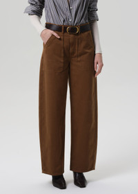 The ‘Ayla Cargo’ reimagines the baggy silhouette with utilitarian pocketing and structured ease. Style with pared-back knits or tonal layers for a modern, utilitarian look. This fit is true to size. Looks Like: Dark copper cargo pant with utility pockets Feels Like: Durable rigid, non-stretch supima twill made to hold its shape This product is made with regenerative cotton from Citizens of Humanity Group’s Regenerative Cotton Program. Our program collaborates closely with farmers both domestically and internationally, nurturing growth, fostering education, and encouraging the widespread adoption of regenerative agricultural practices. From our HUMANITY Collection DETAILS Closure: Zip Fly Rise: 12 1/4" Inseam: 30" Leg Opening: 22" Model is 5'10" and wearing a size 27 Fabric Content: 100% Regenerative cotton Care Instructions: Machine wash cold inside out with like colors. Do not bleach. Tumble dry low. Made in Turkey with imported materials 2185-3055_BRNZE