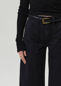 The ‘Ayla Cargo’ reimagines the baggy silhouette with utilitarian pocketing and structured ease. Style with pared-back knits or tonal layers for a modern, utilitarian look. This fit is true to size. Looks Like: Washed out black cargo pant with utility pockets Feels Like: Durable rigid, non-stretch supima twill made to hold its shape From our HUMANITY Collection DETAILS Closure: Zip Fly Rise: 12 1/4" Inseam: 30" Leg Opening: 22" Model is 5'10" and wearing a size 27 Fabric Content: 100% Regenerative cotton Care Instructions: Machine wash cold inside out with like colors. Do not bleach. Tumble dry low. Made in Turkey with imported materials 2185-3055_WBLK