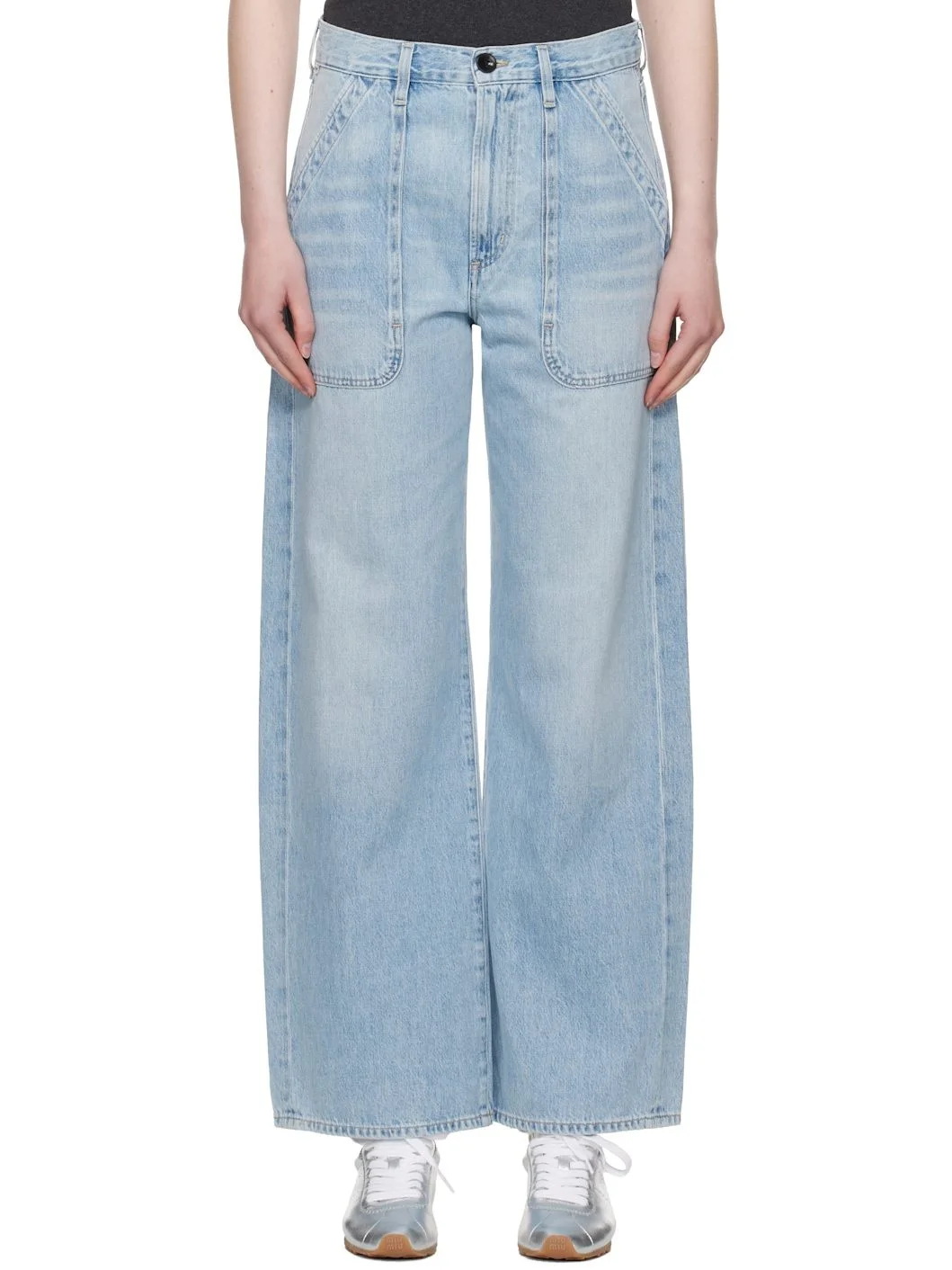 Non-stretch regenerative cotton denim jeans. · Wide-leg · Belt loops · Five-pocket styling · Zip fly · Logo patch at back waistband · Logo-engraved silver-tone hardware Supplier color: Cloud nine 100% regenerative cotton. Made in United States 252030F069009